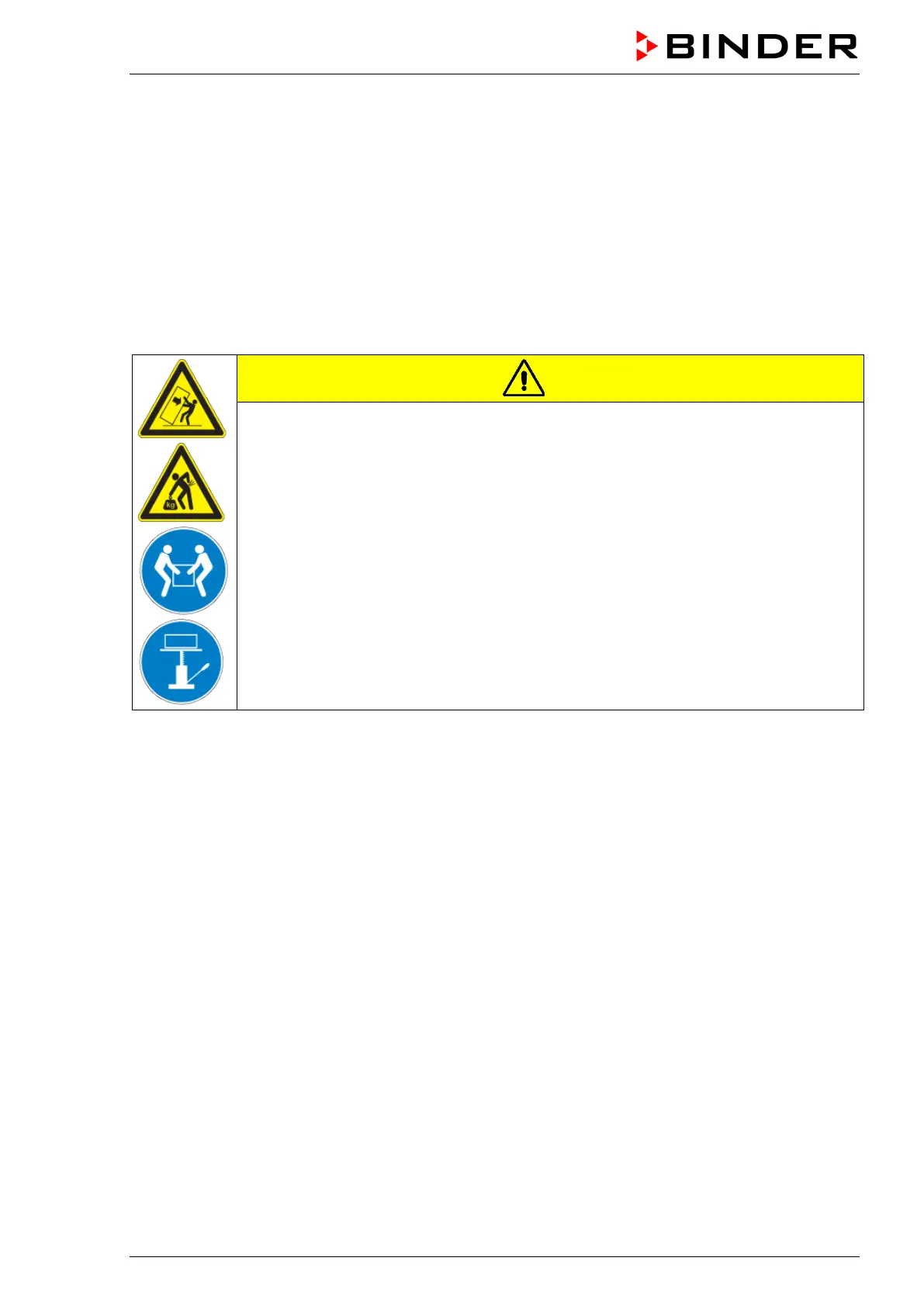 Risk of injury and damages by lifting heavy loads and by sliding or tilting of the