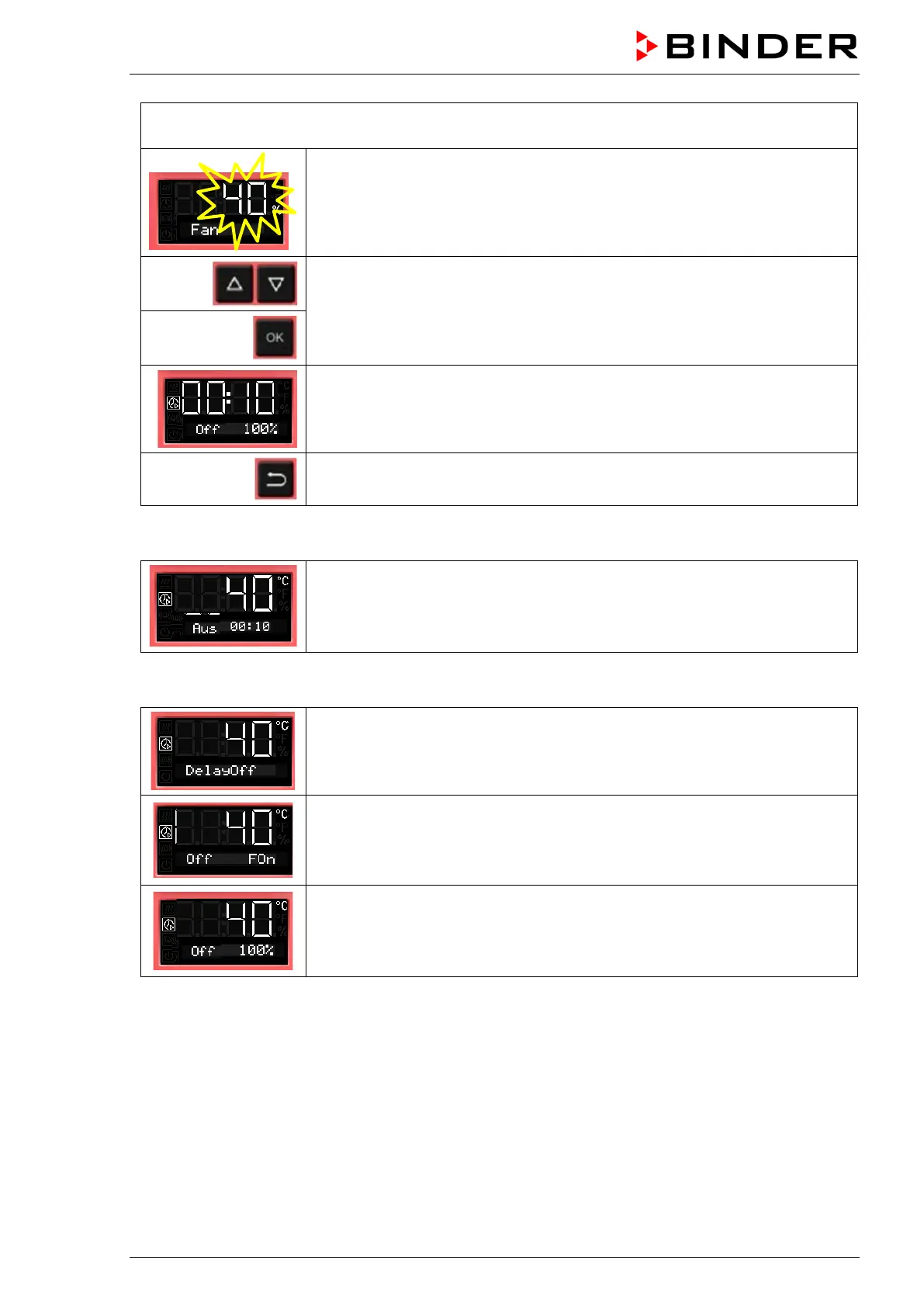 Enter the fan speed in steps of 10 %