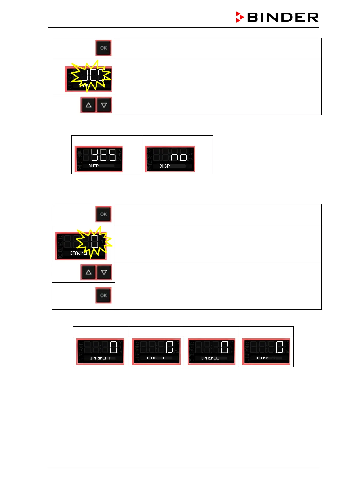 Continue with OK to switching on and off the DHCP state