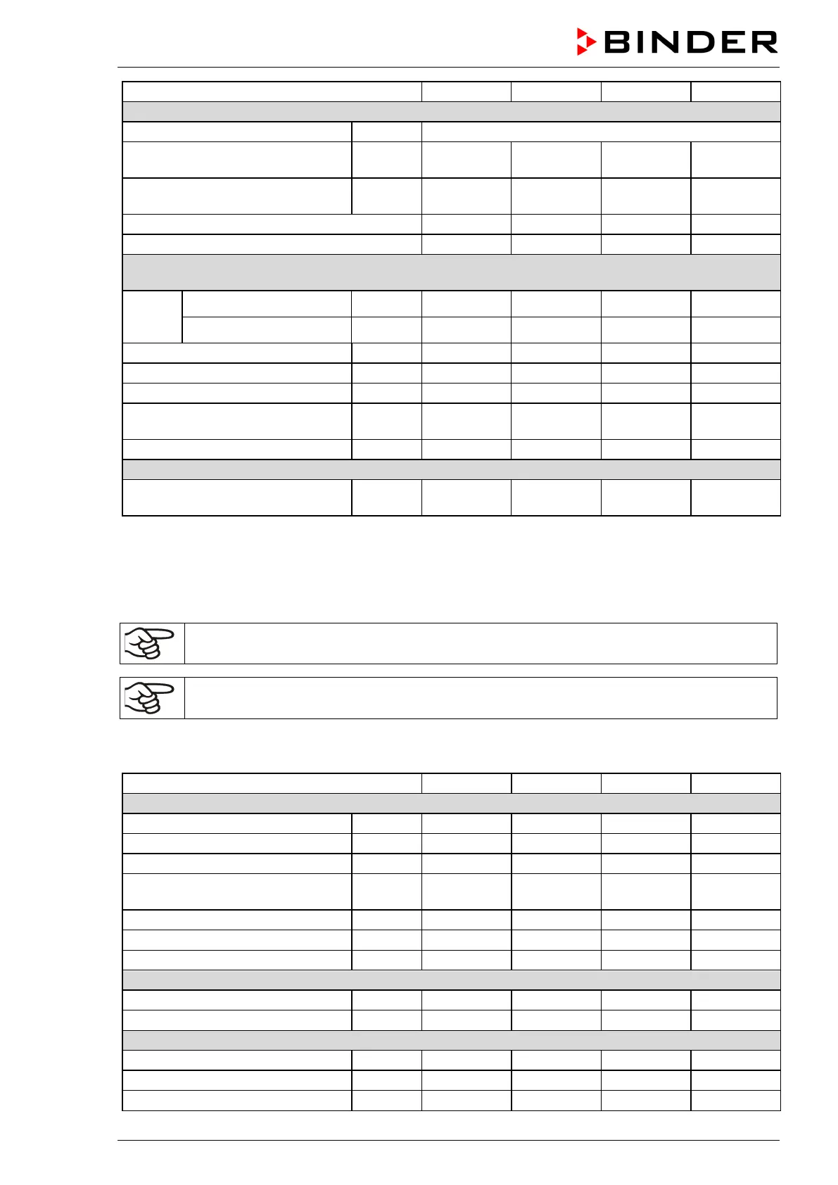 determined in accordance to BINDER Factory Standard Part 2:2015 and DIN 12880:2007.