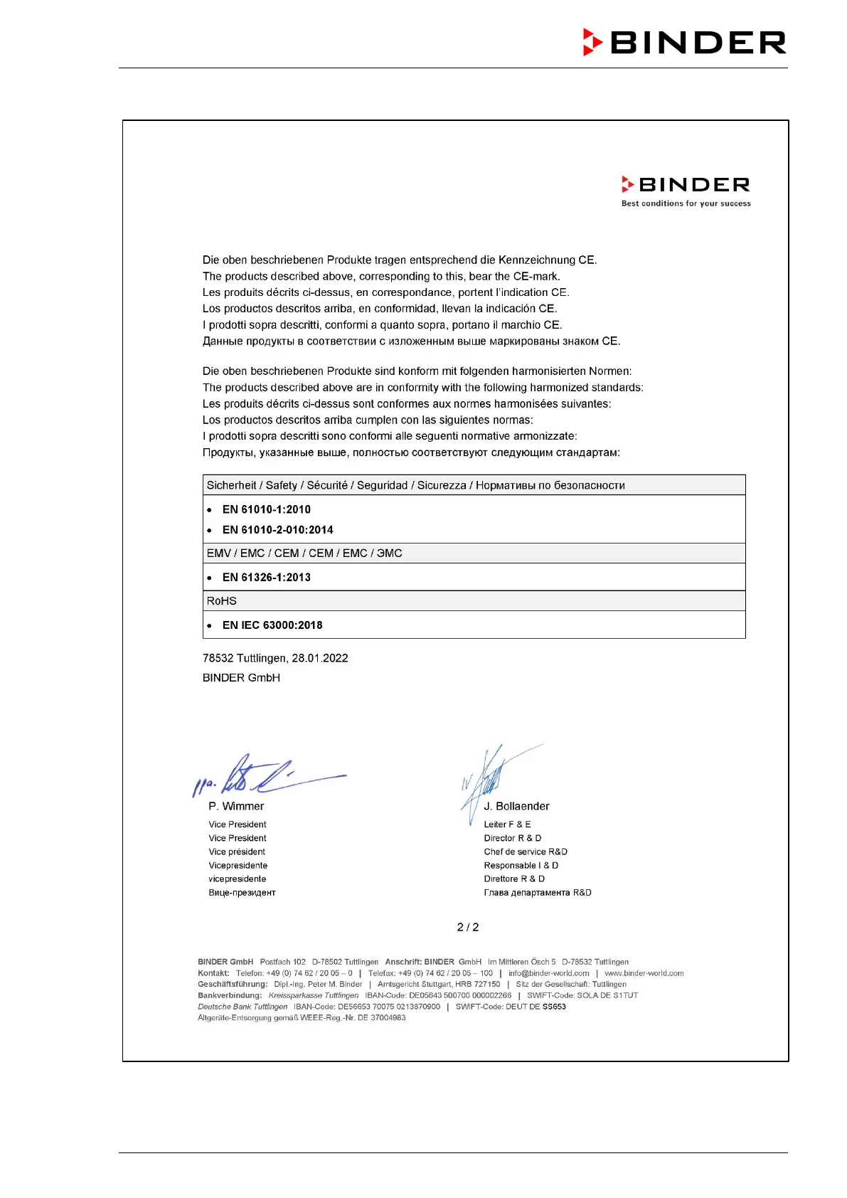 Other manuals for Binder 9010-0323