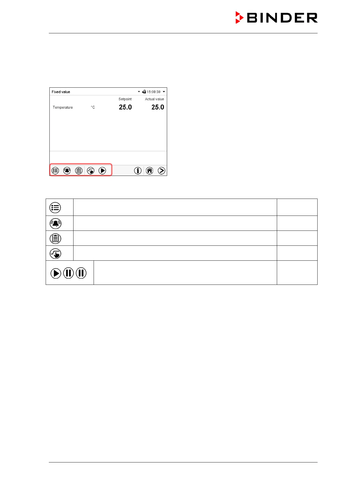 Use the navigation icons in the screen footer in Normal display to access the desired controller func-