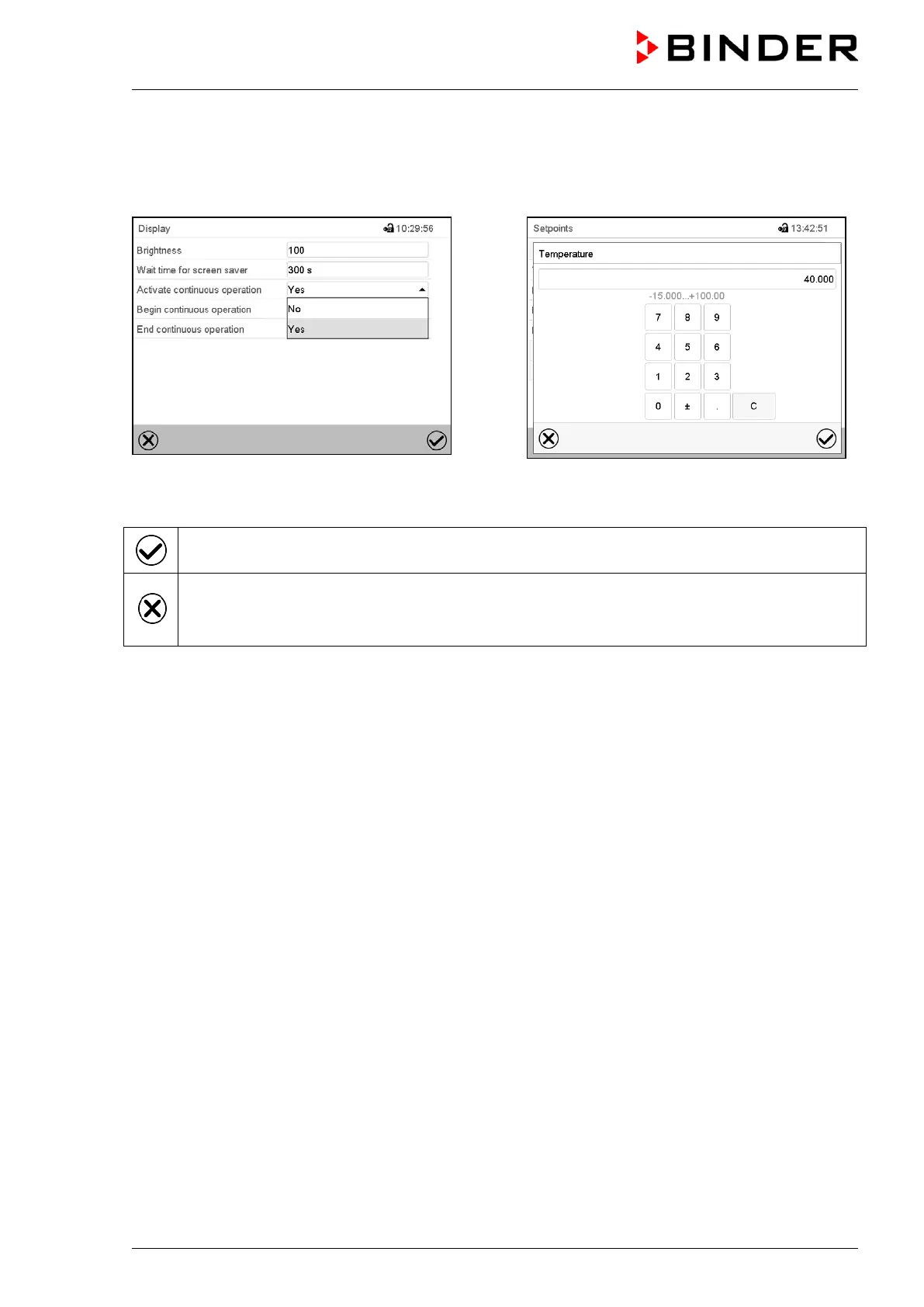 Press the Confirm icon to take over the entries and exit the menu or continue the menu se-