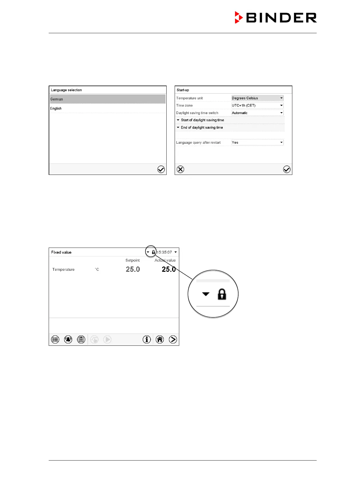 In the locked view the controller provides all display functions. No setting functions are available.