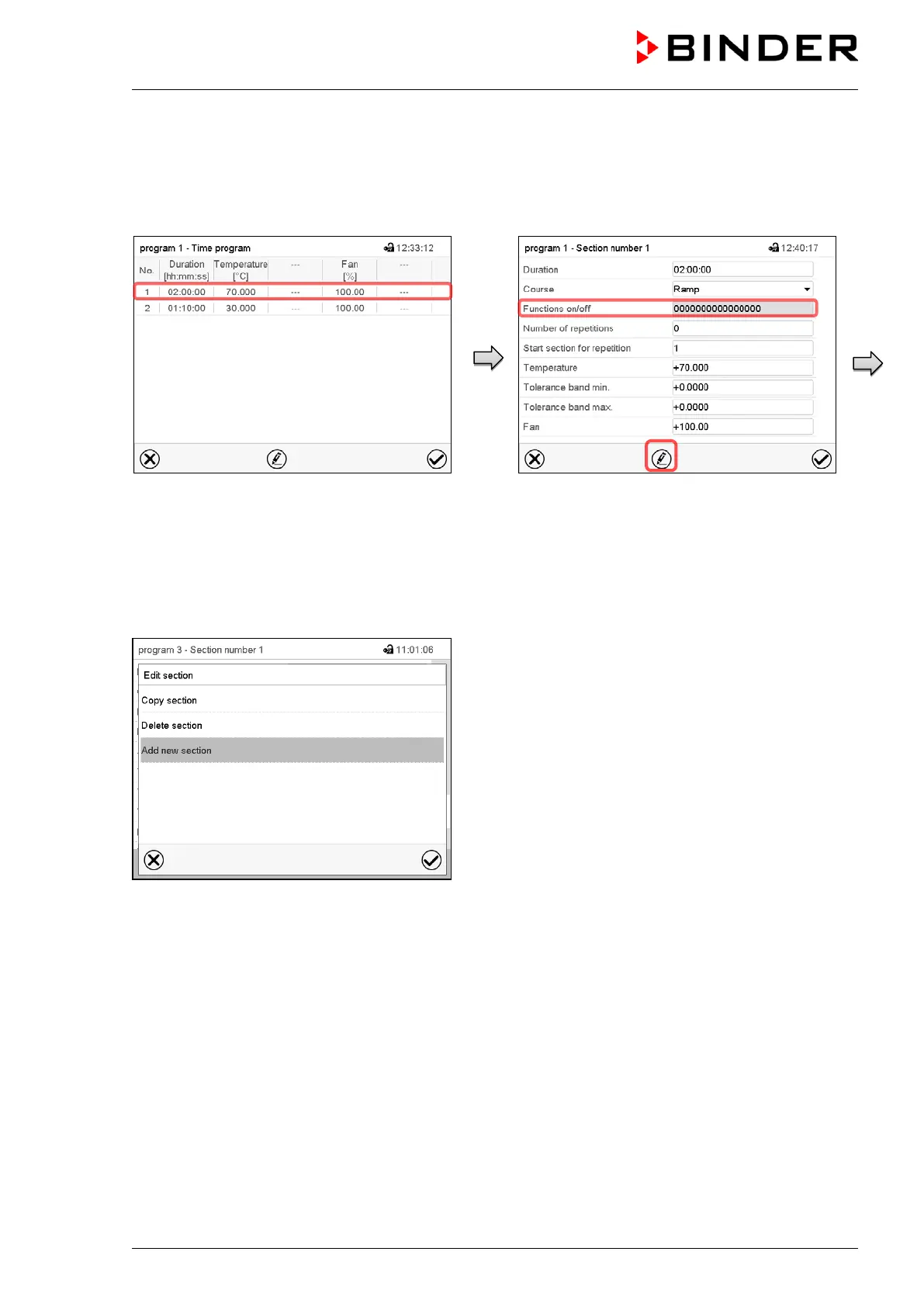• Insert section: Adding the copied section. This menu point is visible only after a section has been cop-