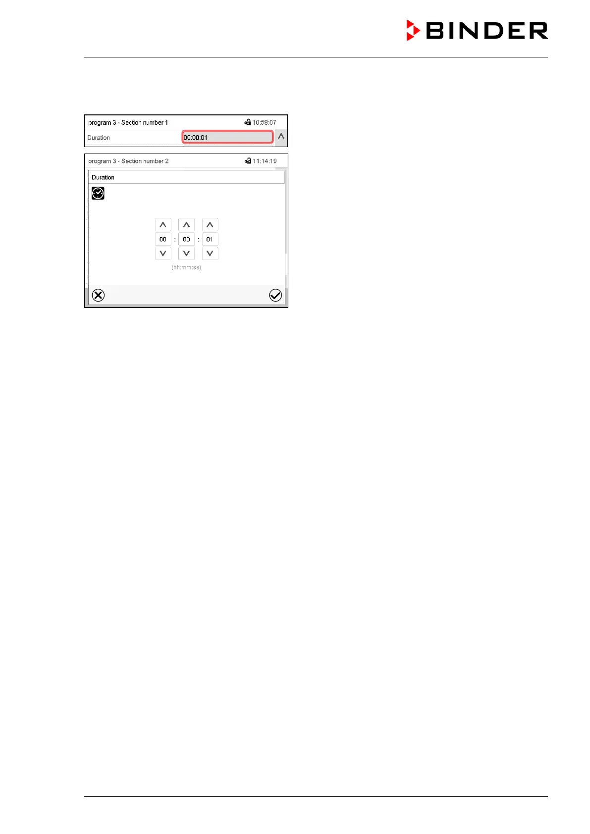 Enter the desired section duration with the arrow keys
