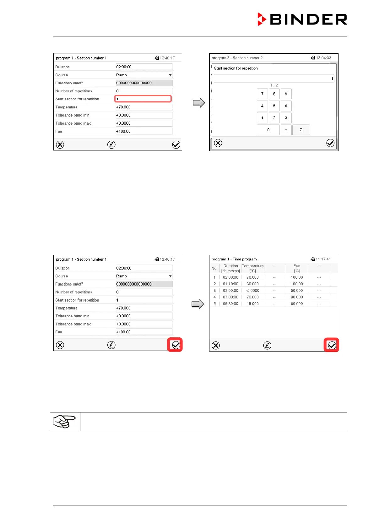 To save the programming it is absolutely required to press the Confirm icon. Otherwise all