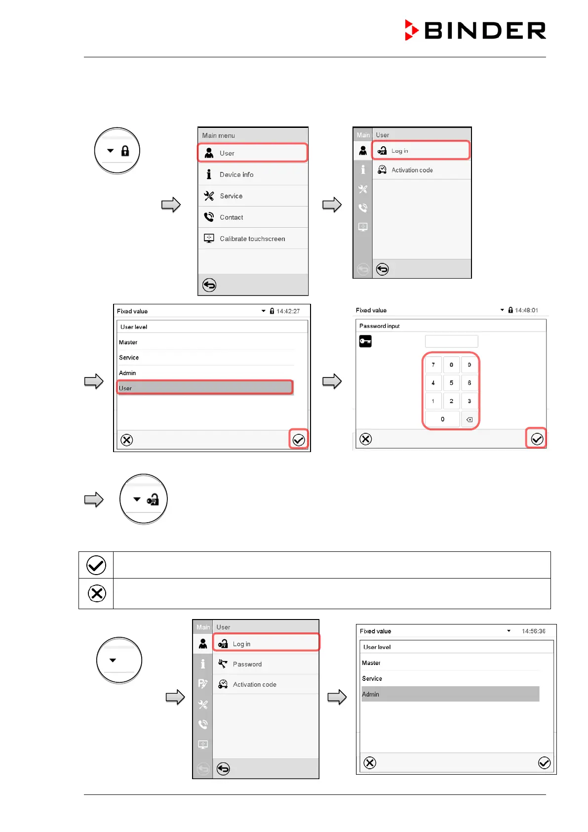 Selection of user type (example) All selection possibilities are password protected