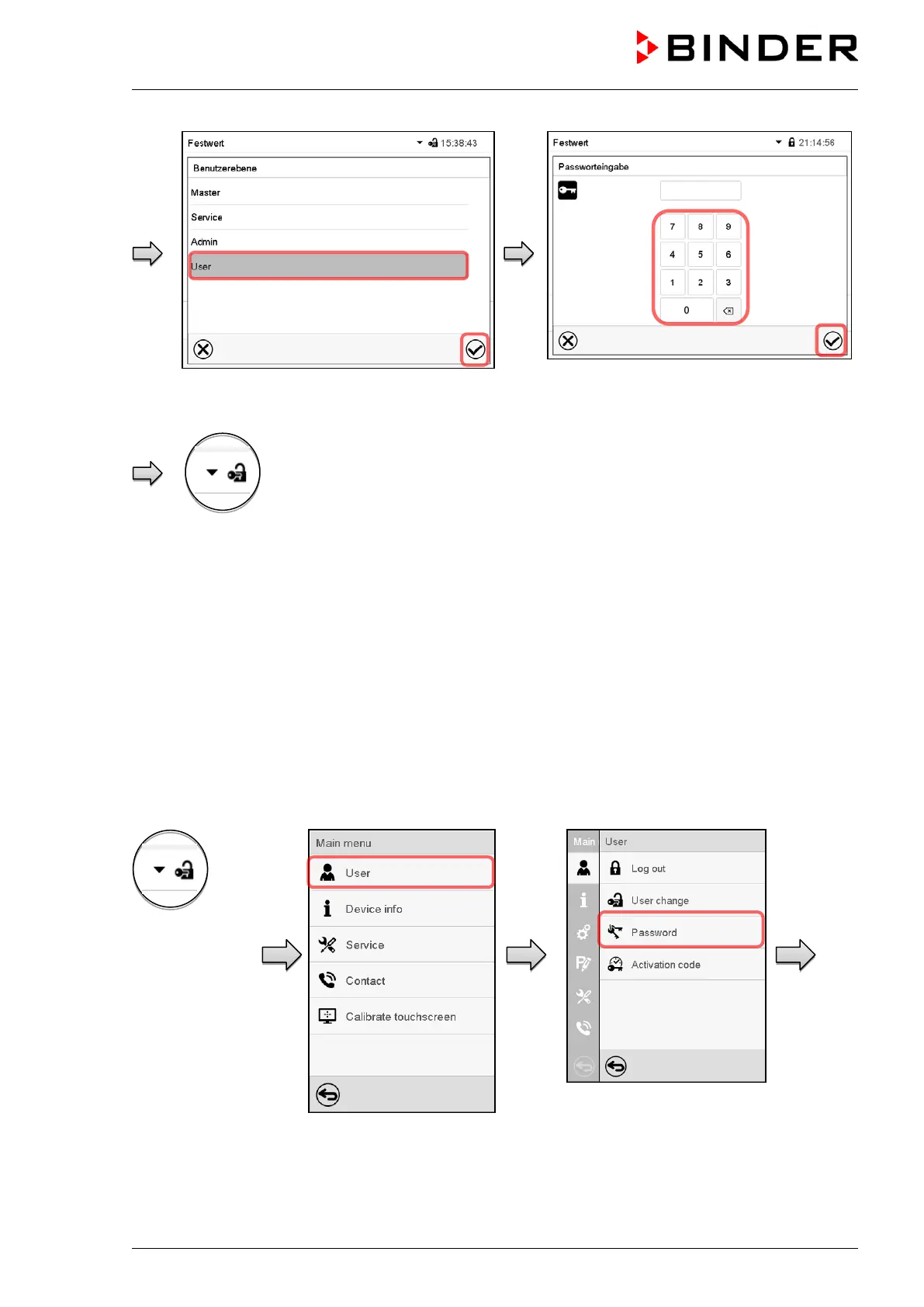 Path: Main menu > User > Password