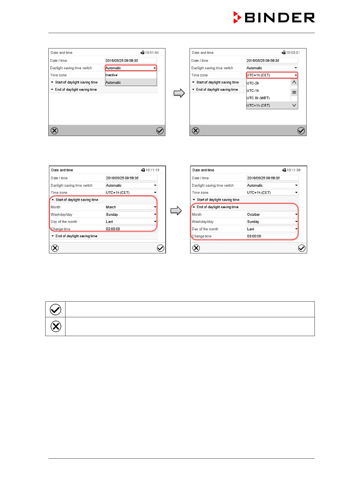 time and press the Confirm icon.
