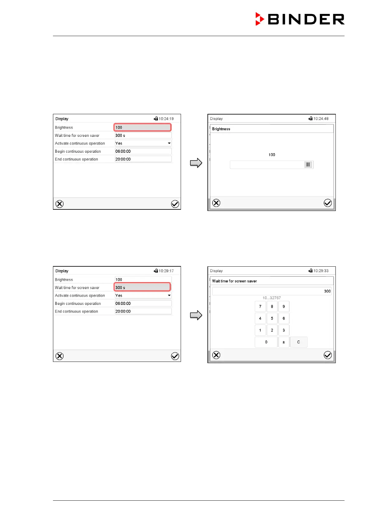 Enter the desired waiting time for the screen