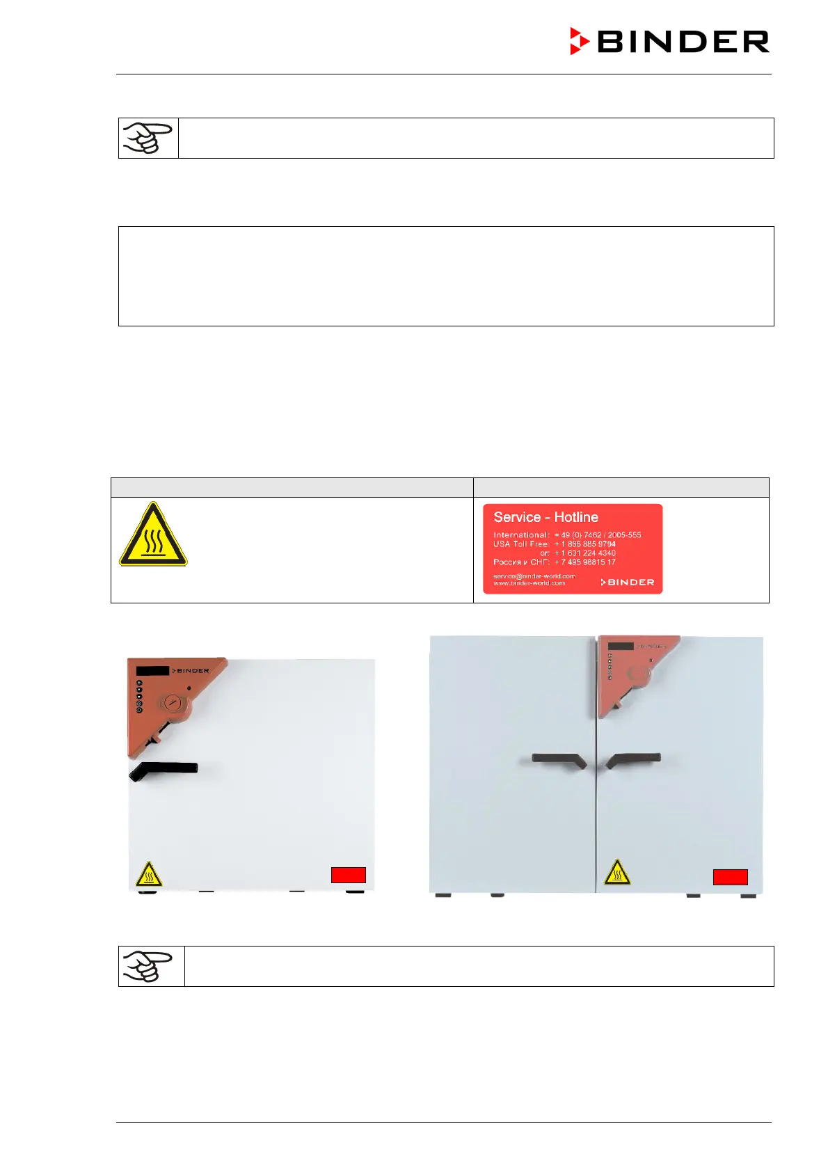 Replace safety labels that are no longer legible. Contact BINDER Service for these replacements.
