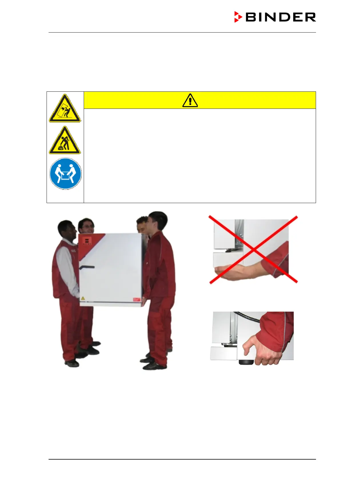 ∅ Do NOT lift or transport the unit using the door handle, the door or the lower housing.