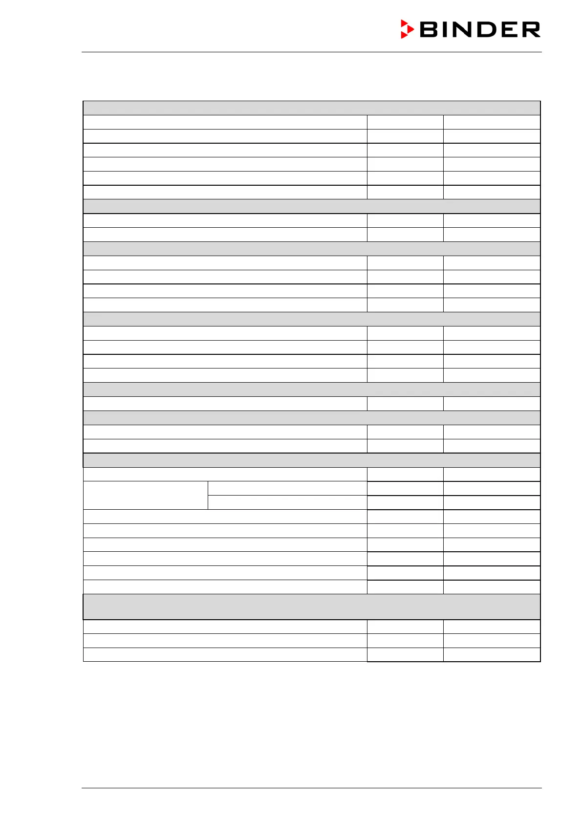 determined in accordance to BINDER Factory Standard Part 1:2015 following DIN 12880:2007.