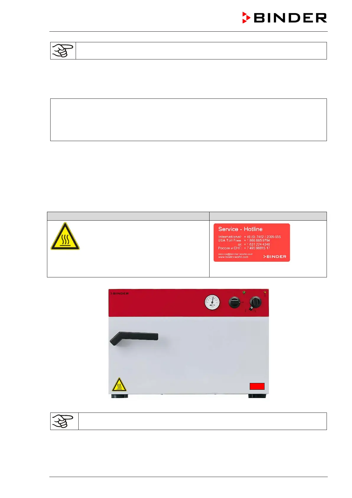 Replace safety labels that are no longer legible. Contact BINDER Service for these replacements.