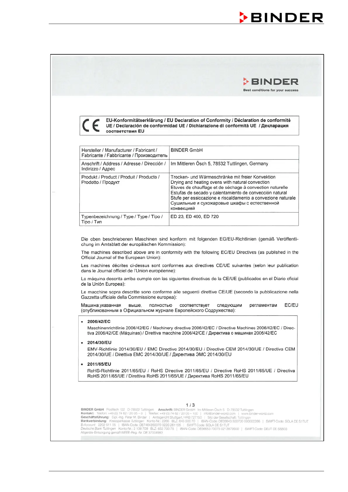 Binder BD 240 - EU Declaration of Conformity for ED