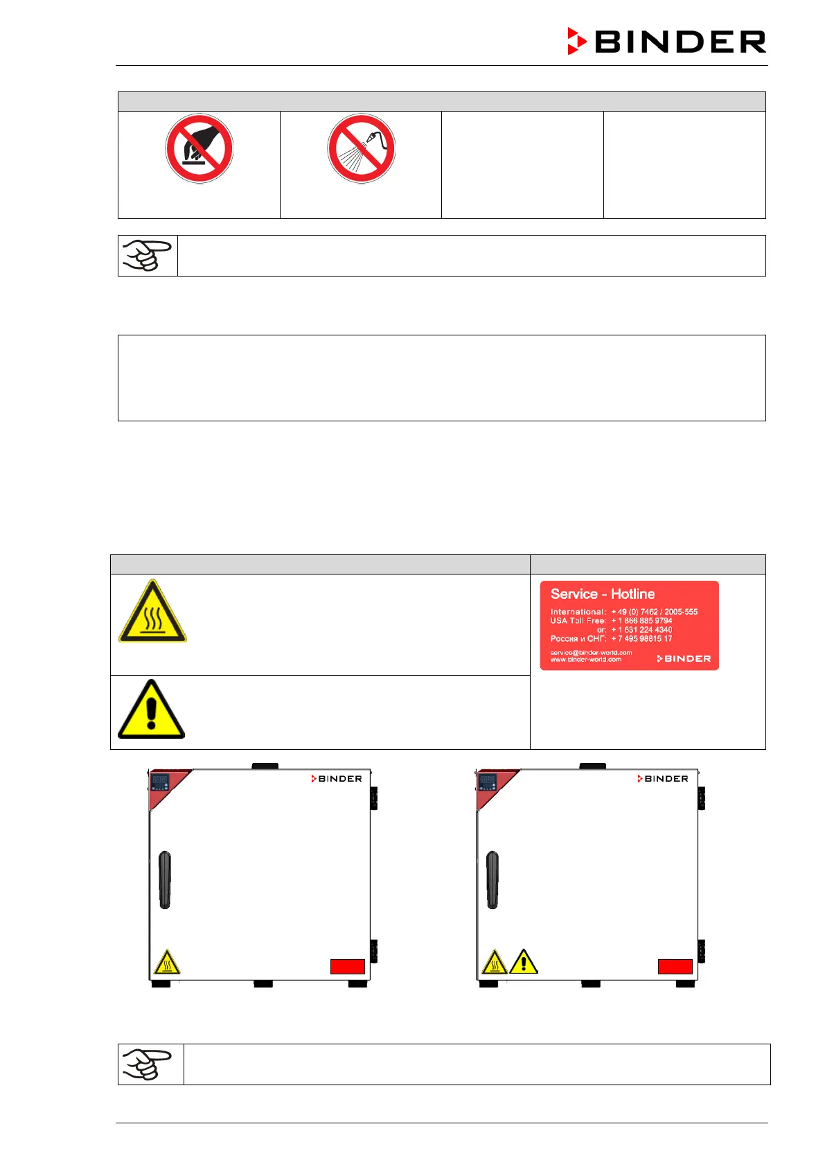 Replace safety labels that are no longer legible. Contact BINDER Service for these replacements.
