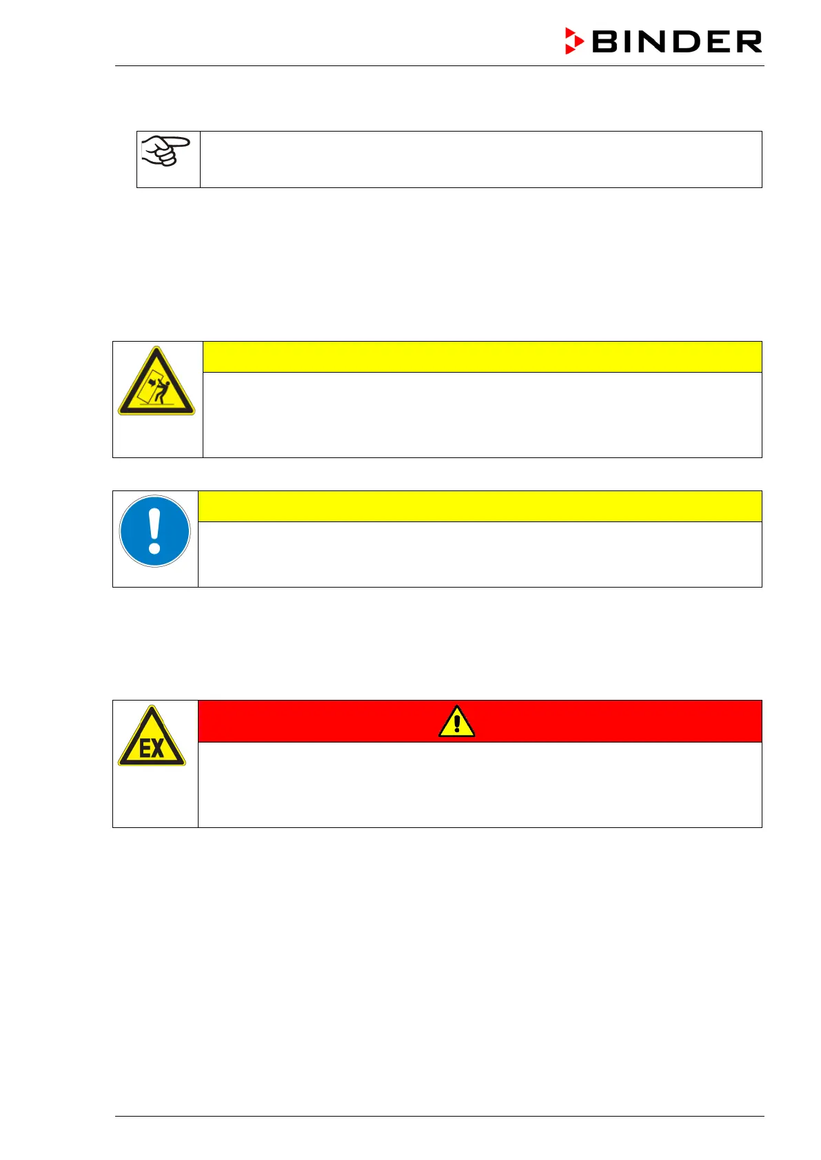 ∅ Do NOT operate the chamber in potentially explosive areas.