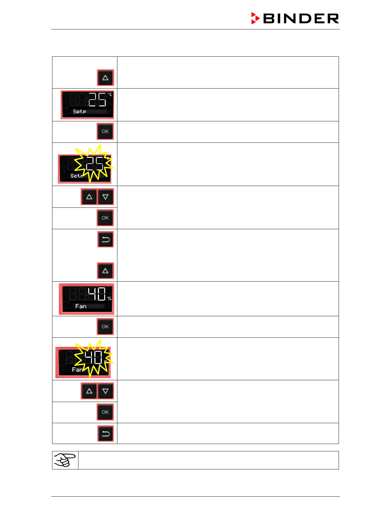 6.6 Set-point entry for temperature and fan speed