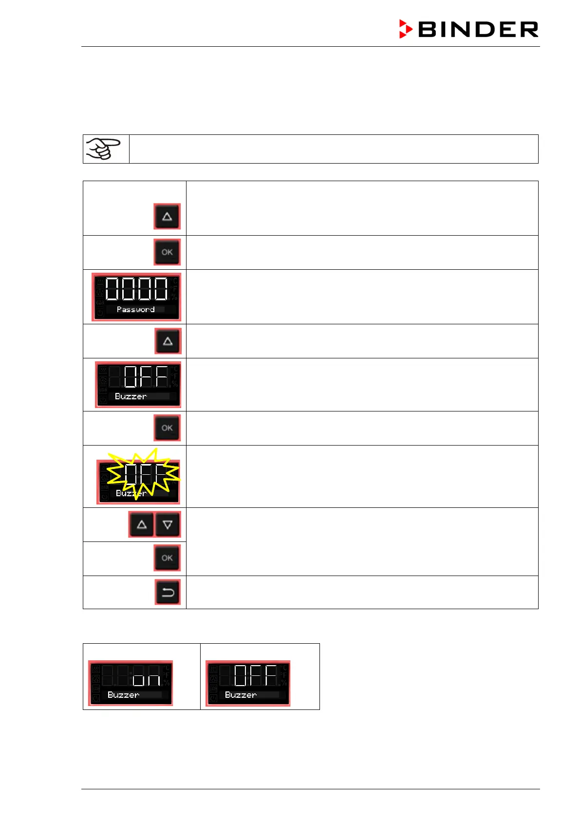 If the buzzer is activated, an audible signal sounds when the limit temperature set at the safety controller