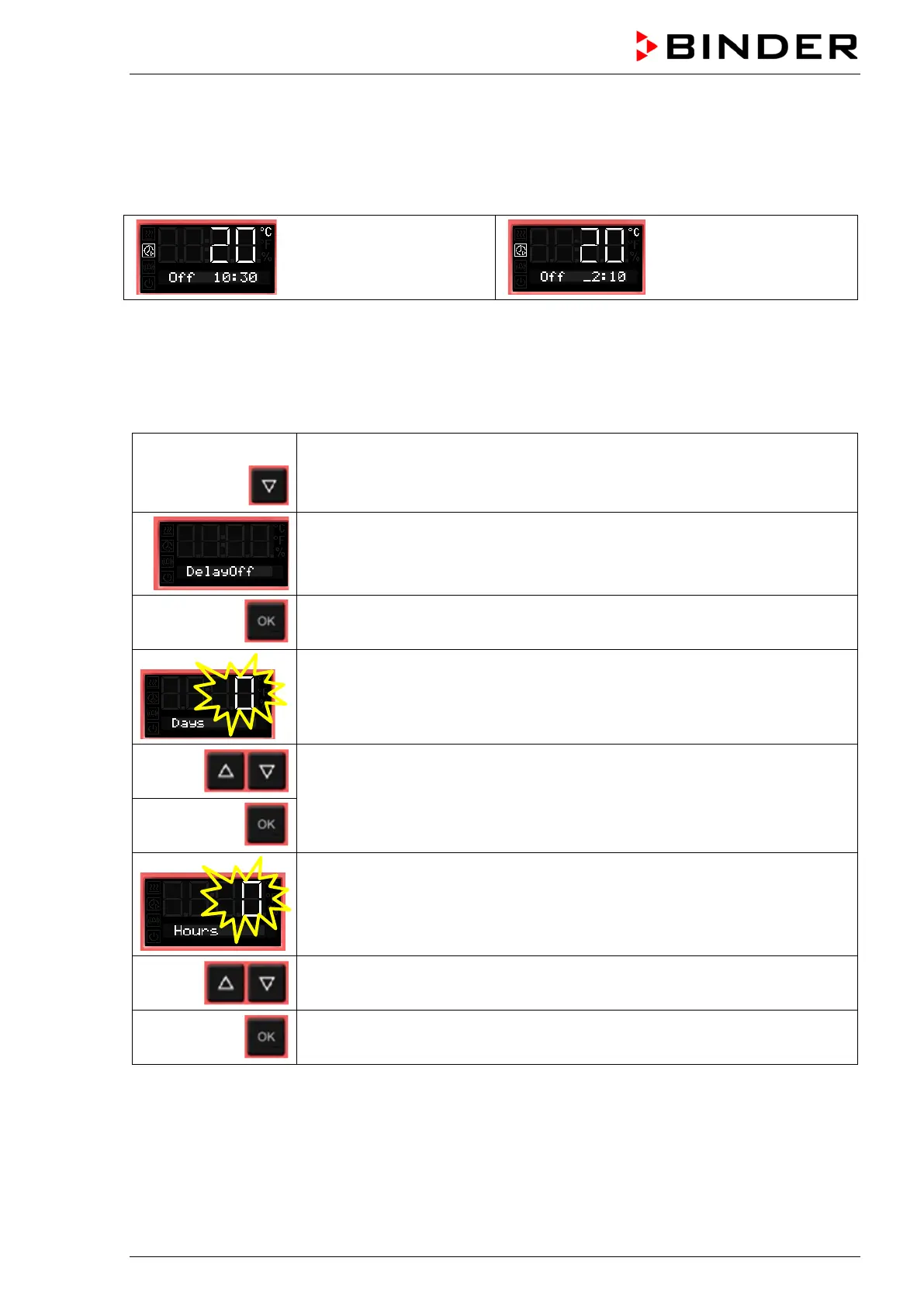 with the arrow-down button to the Timer function “Delayed Off” menu