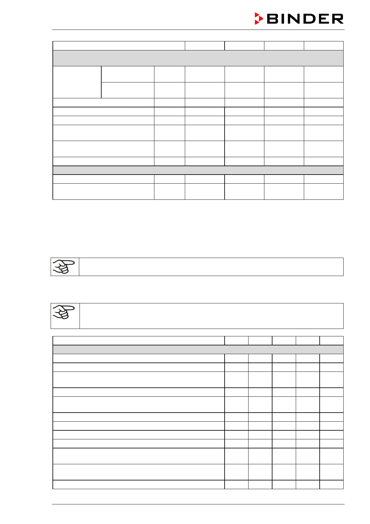 determined in accordance to BINDER Factory Standard Part 2:2015 and DIN 12880:2007.