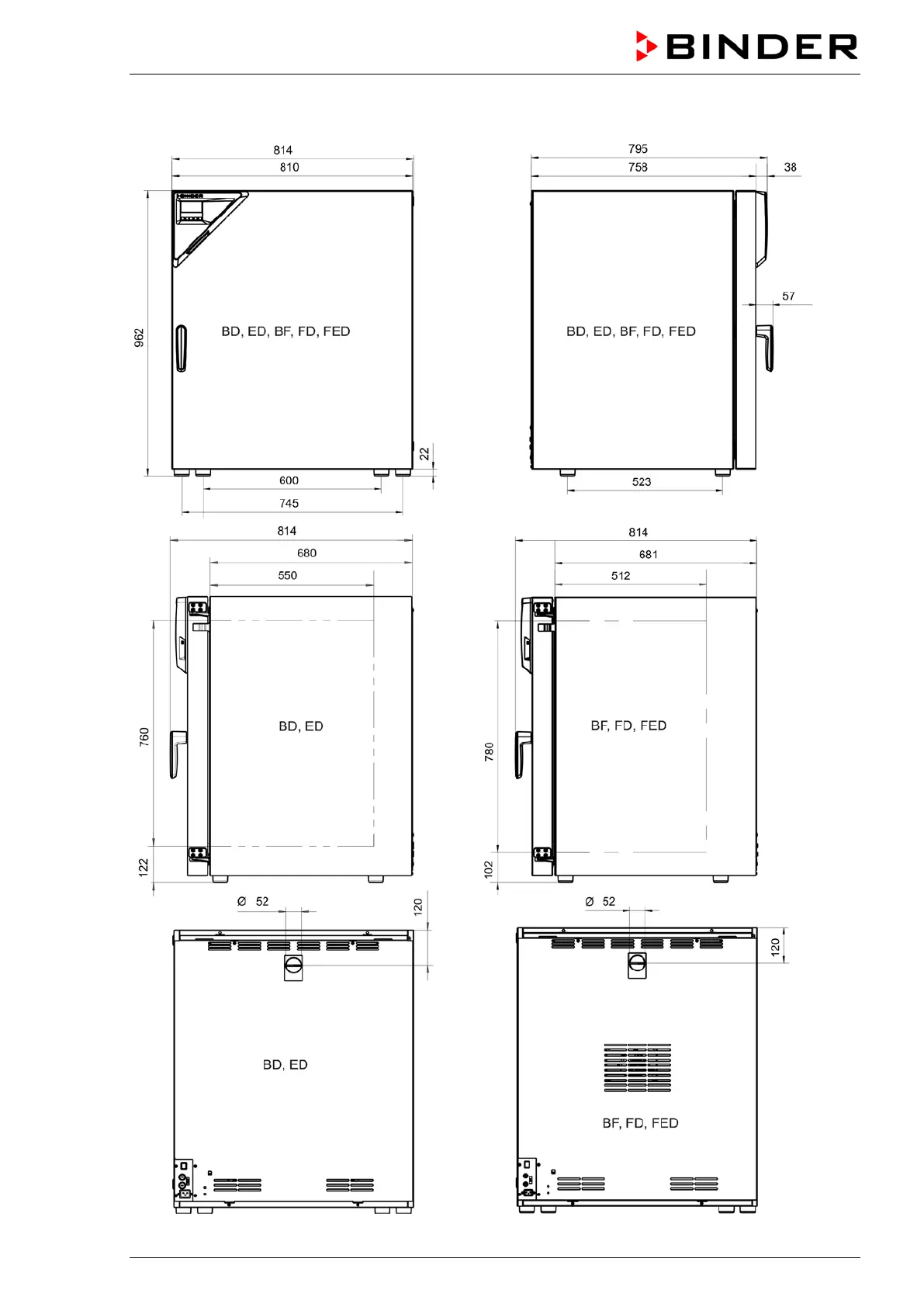 Binder BD056-230V - Dimensions for Size 260 Models