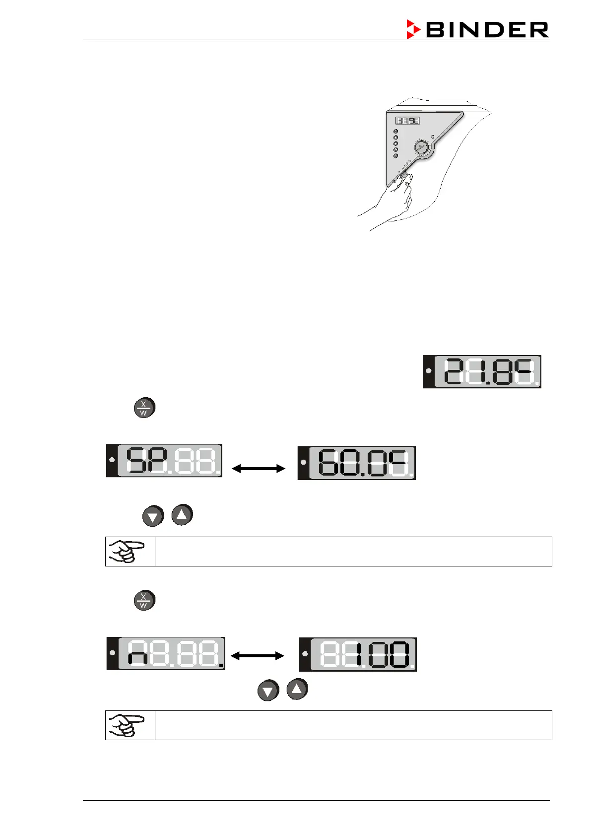 6.1 Display / entry of temperature and ventilation set-points (without ramp