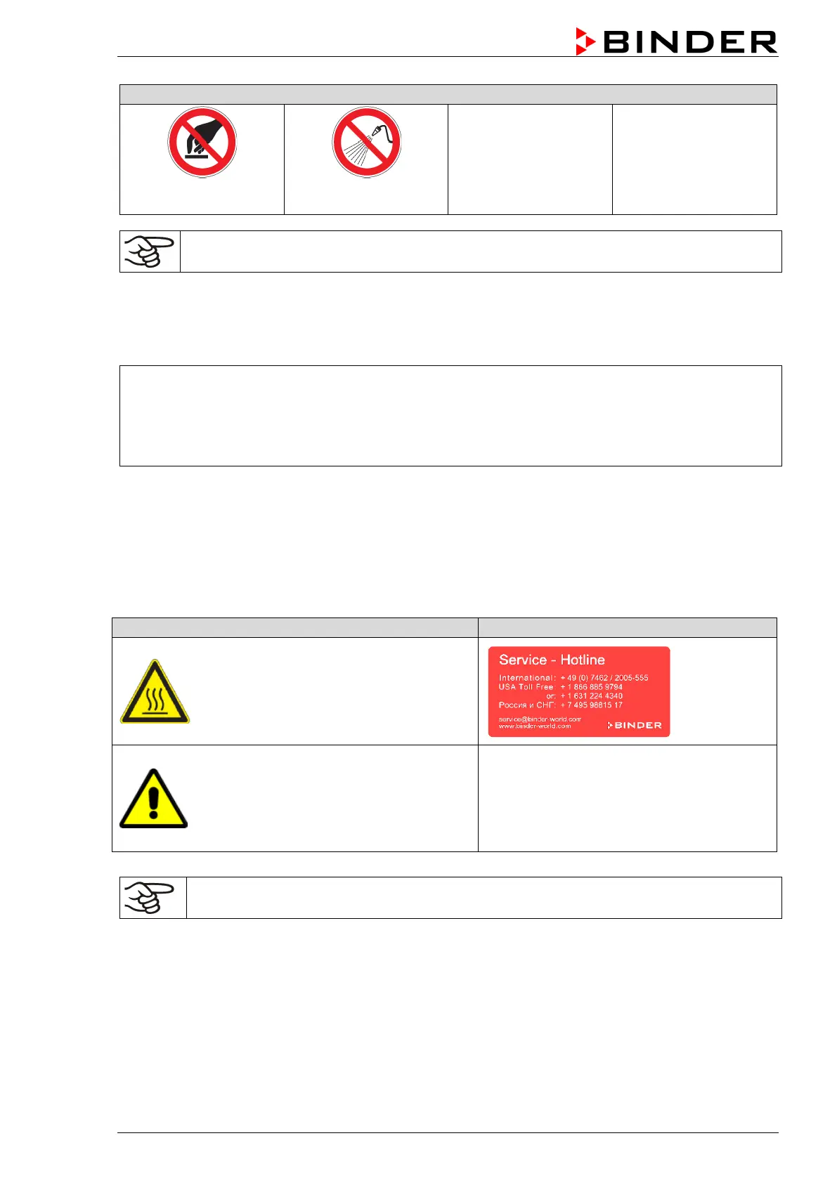 Replace safety labels that are no longer legible. Contact BINDER Service for these replacements.