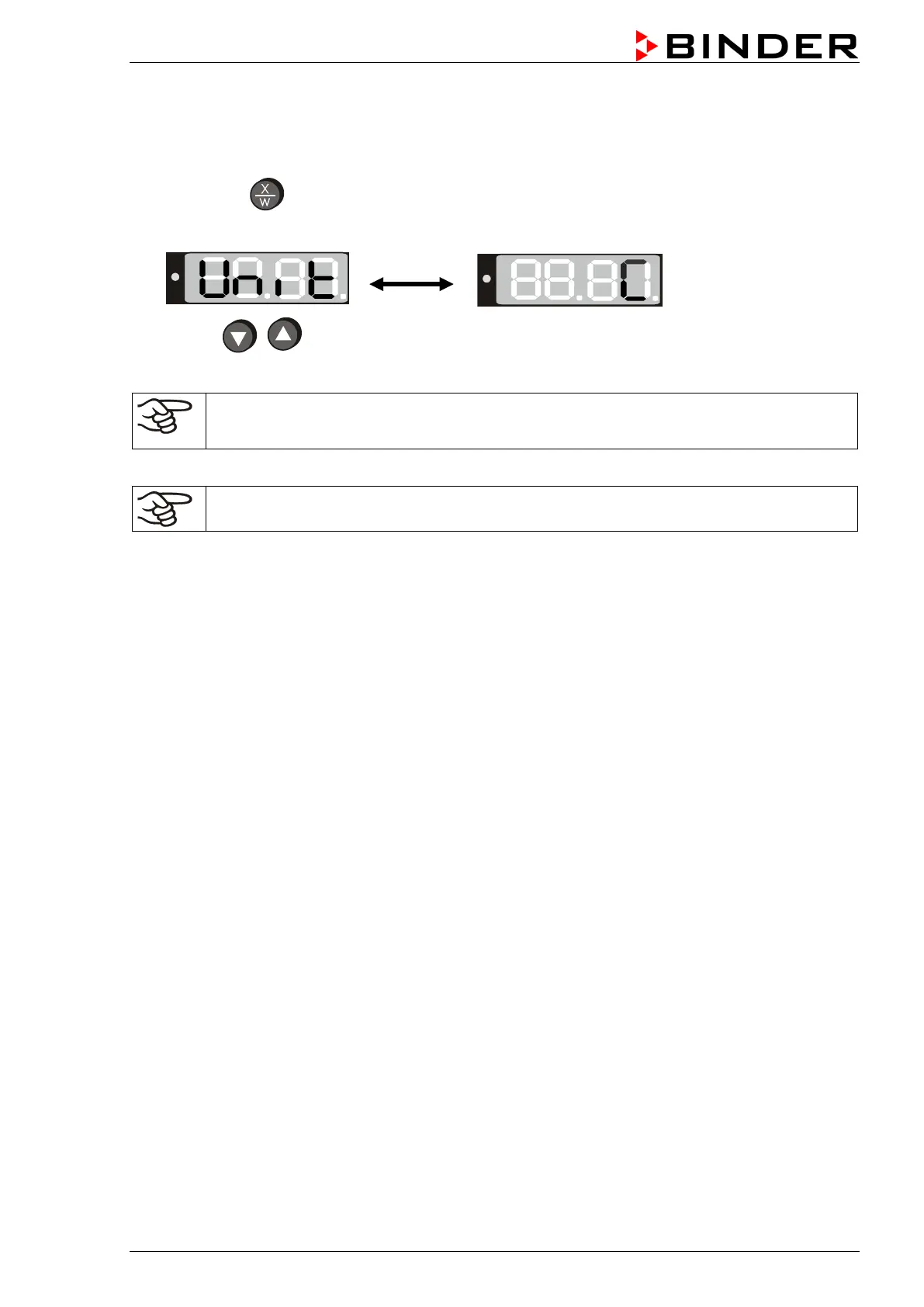 The display alternately shows “unit” and the actual setting of the temperature unit:
