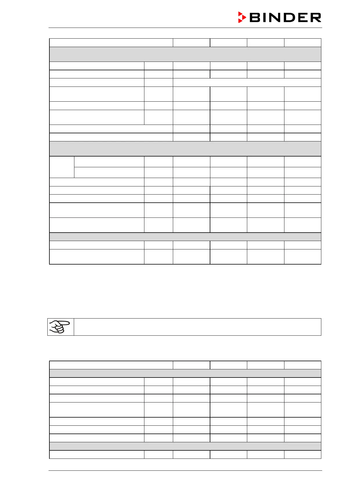 determined in accordance to BINDER Factory Standard Part 2:2015 and DIN 12880:2007.