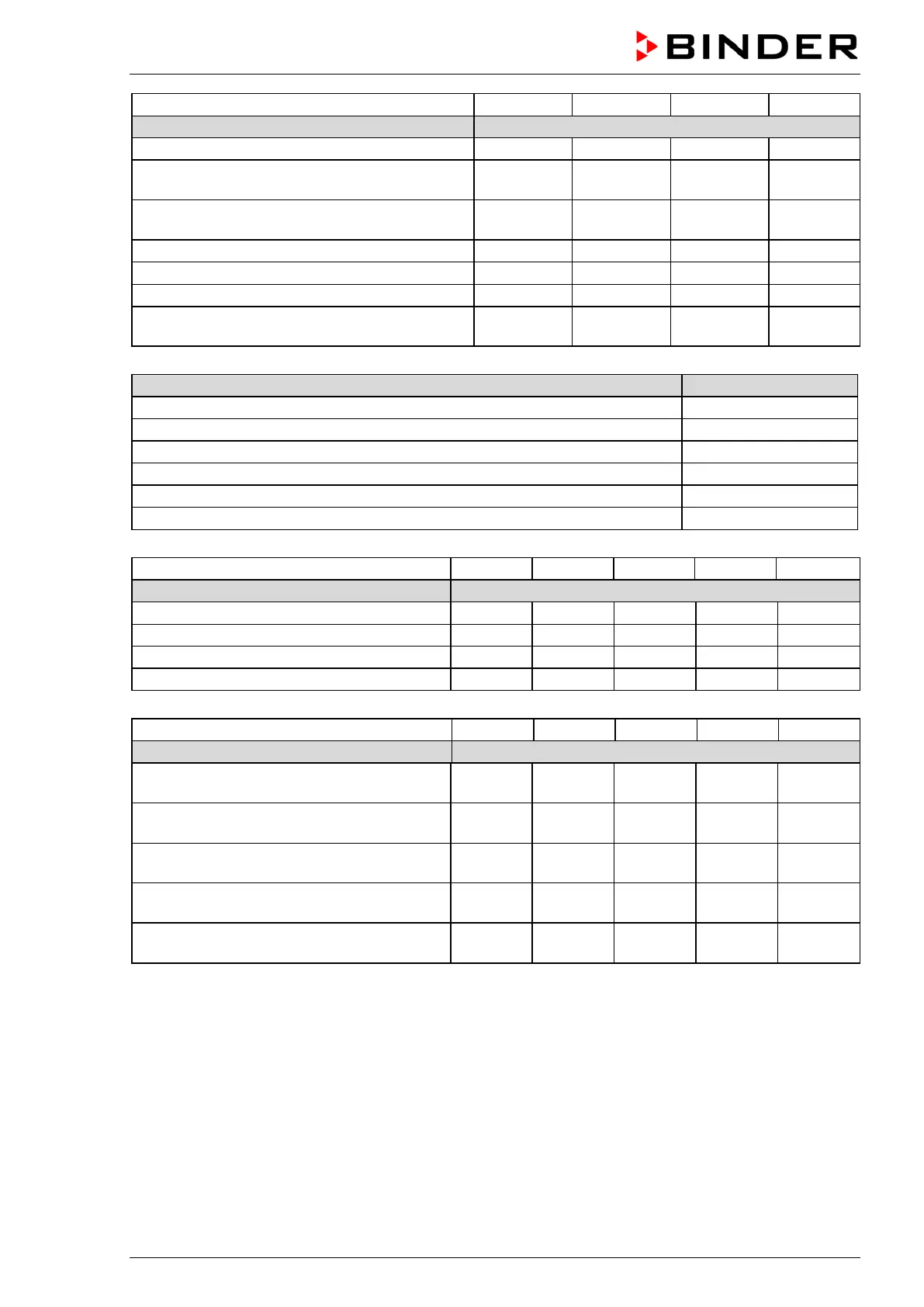 For information on components not listed here, please contact BINDER Service.
