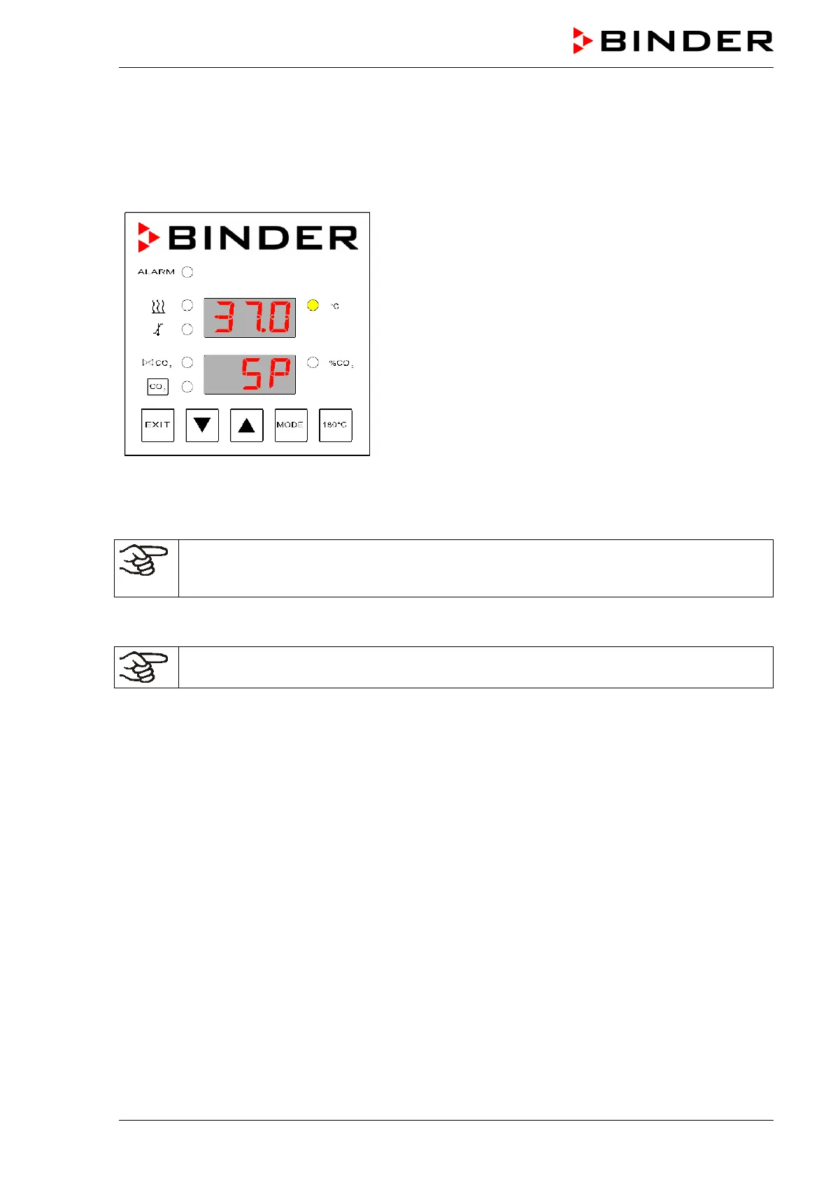 The controller's lower display always shows the operating function (e.g. “SP” = temperature set point) and