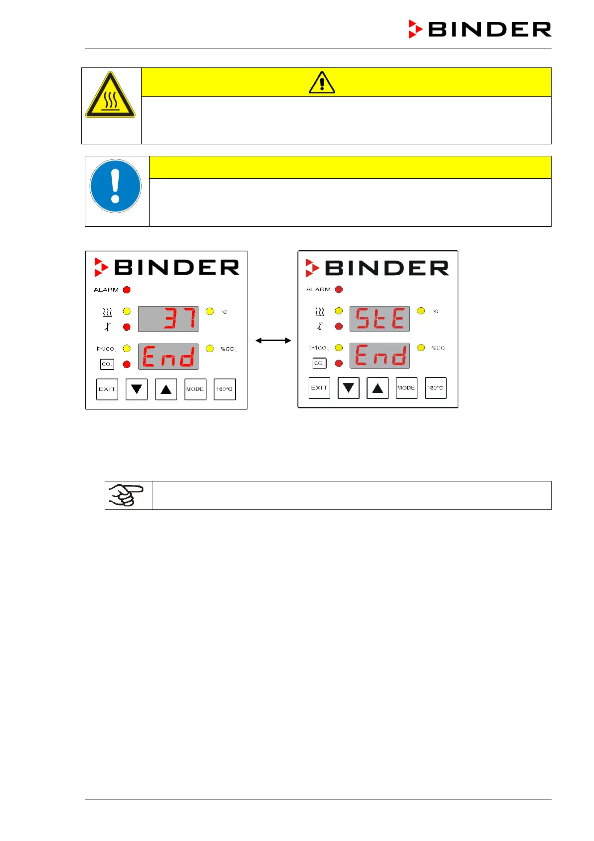 • The sterilization cycle ends after approx. 12 hours, when the lower display shows “End”.