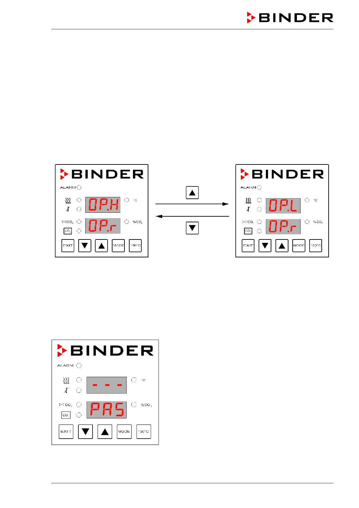 • Press “▼”. In the upper display, “O P. L ” (operating mode LOCK) is now displayed. It is visible only if a