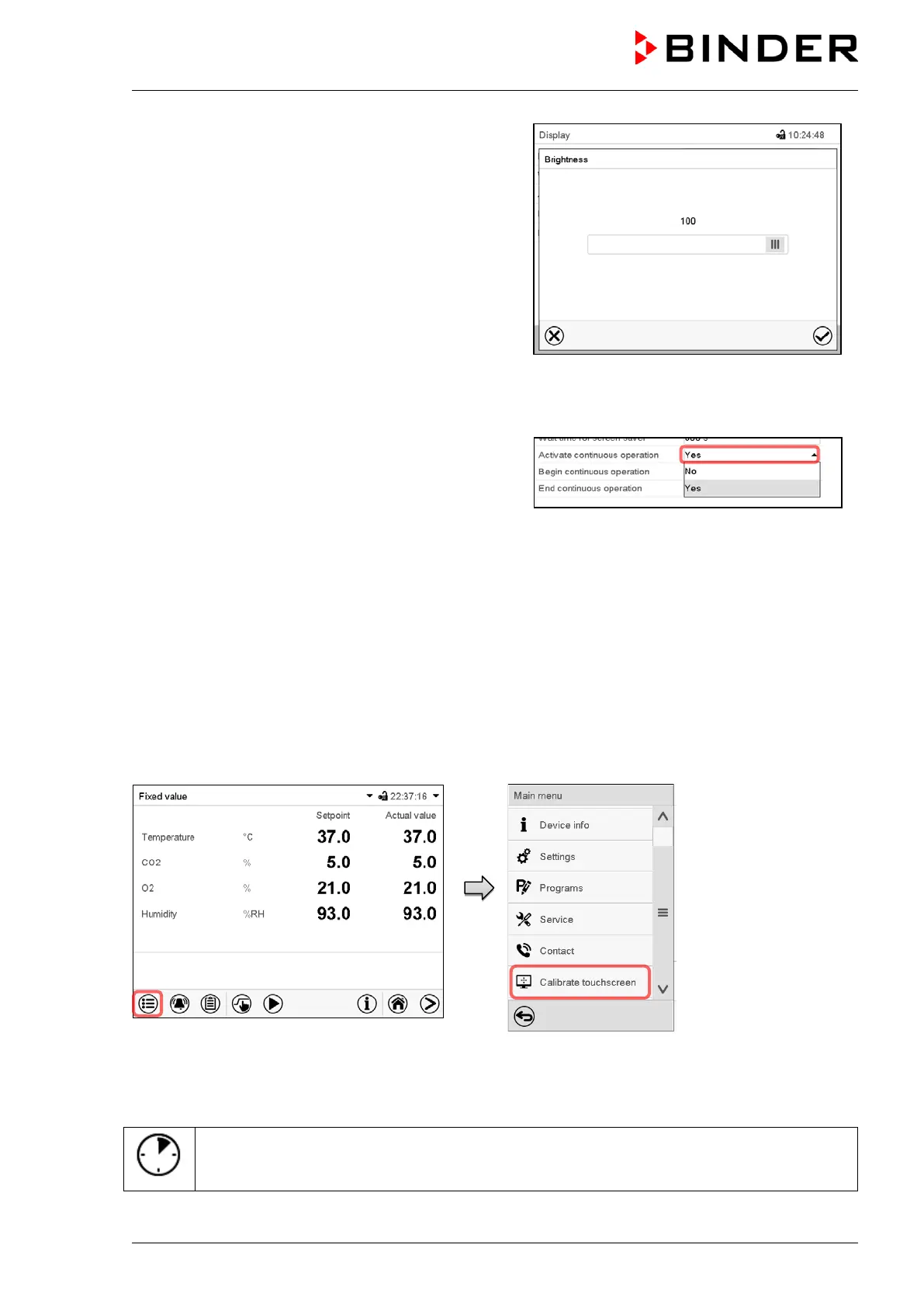 • Select the field “Begin continuous operation” (possible only if continuous operation is activated) and