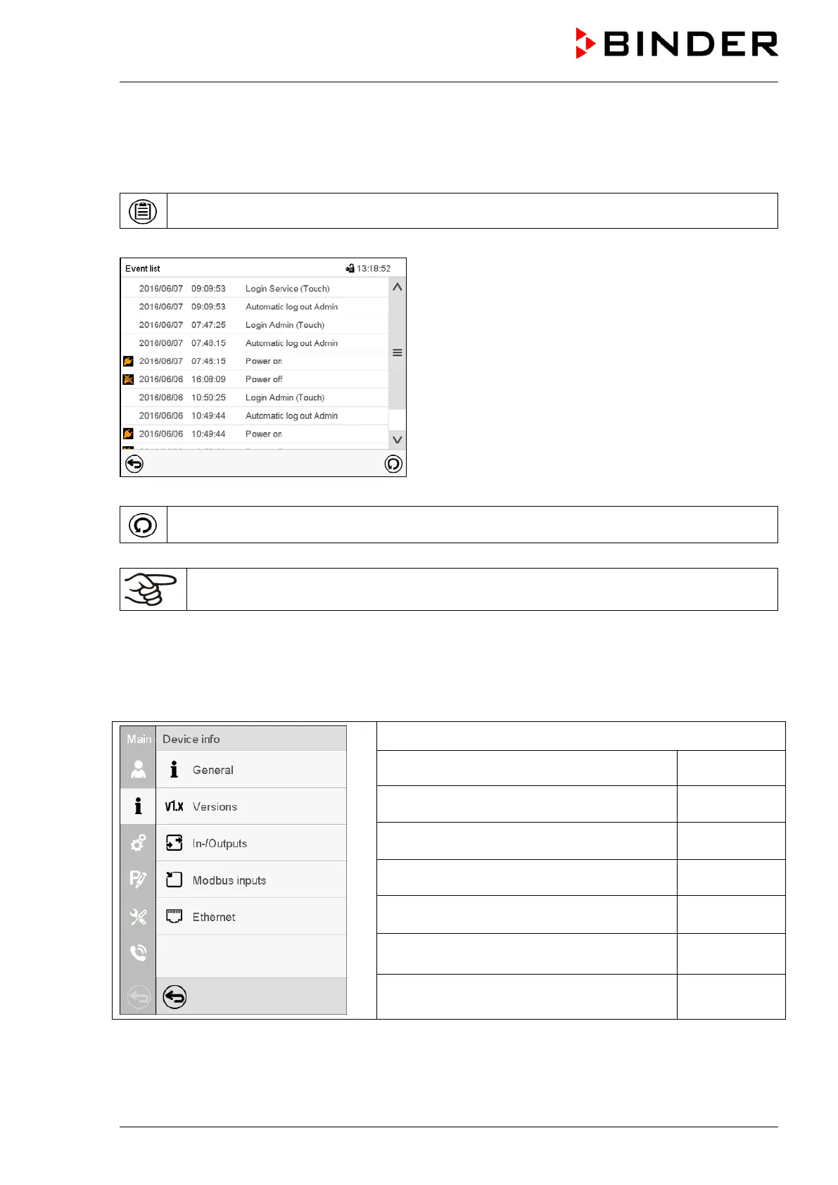 interval of the chart recorder (chap. 16.2) the Event list is cleared.