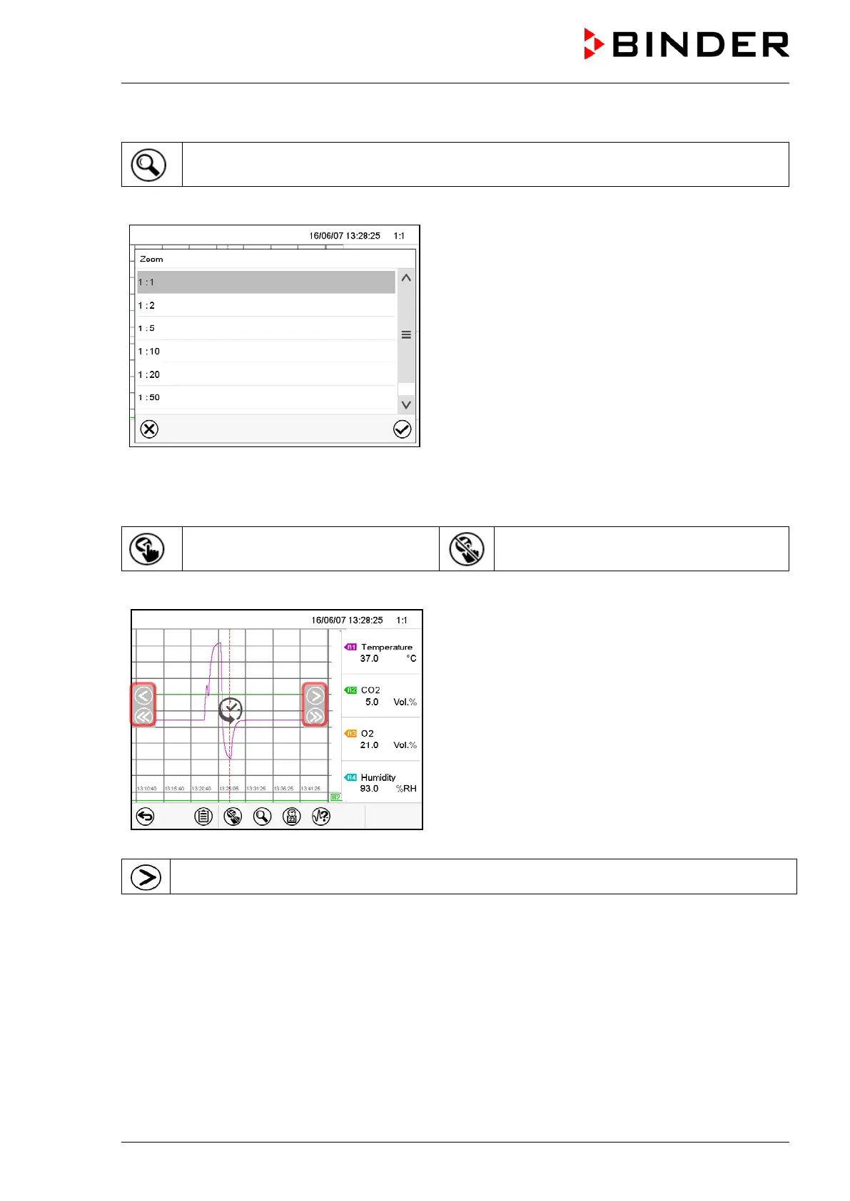 Select the zoom factor and press the Confirm icon