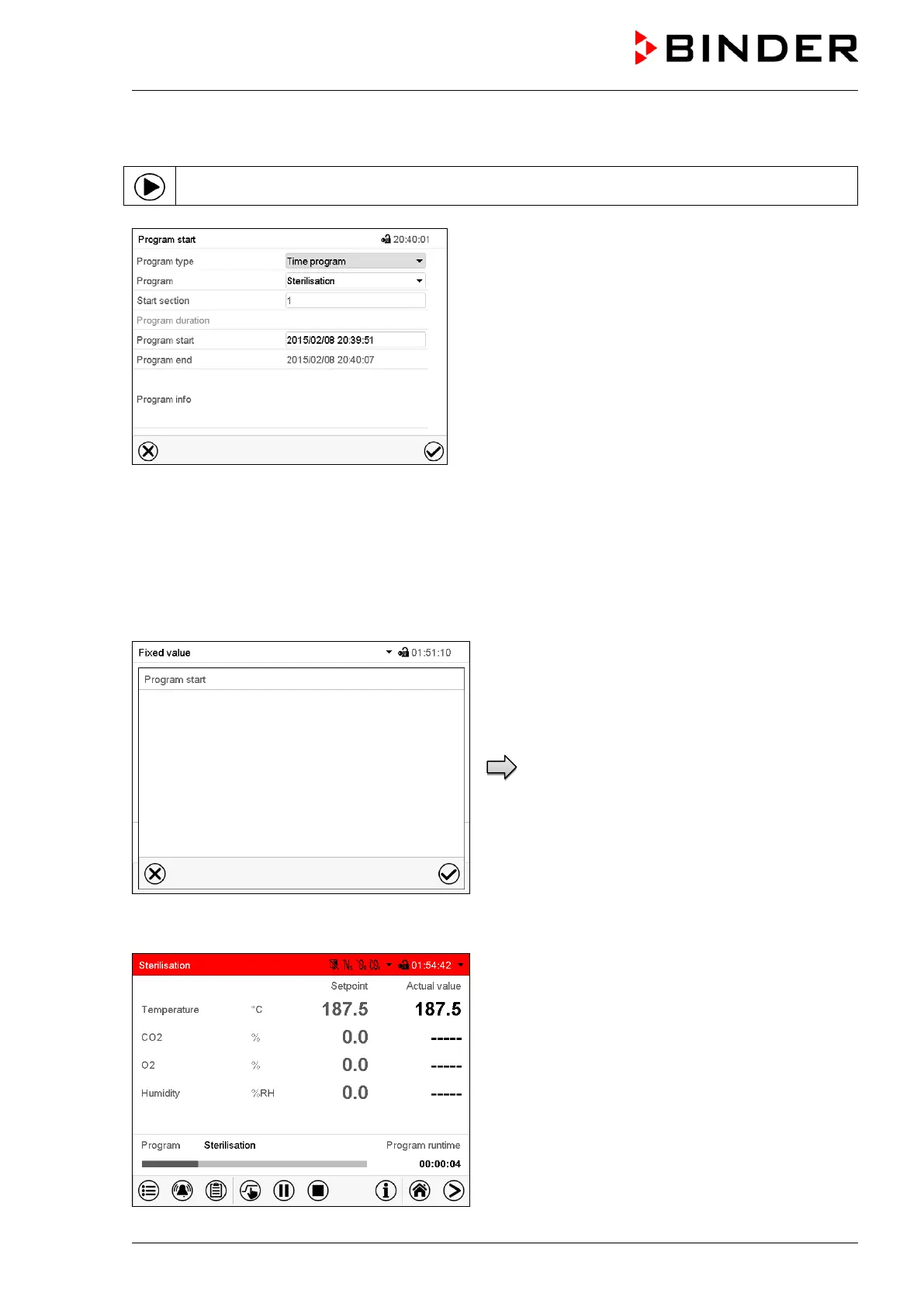 In Normal display press the Program start icon to access the “Program start” menu.