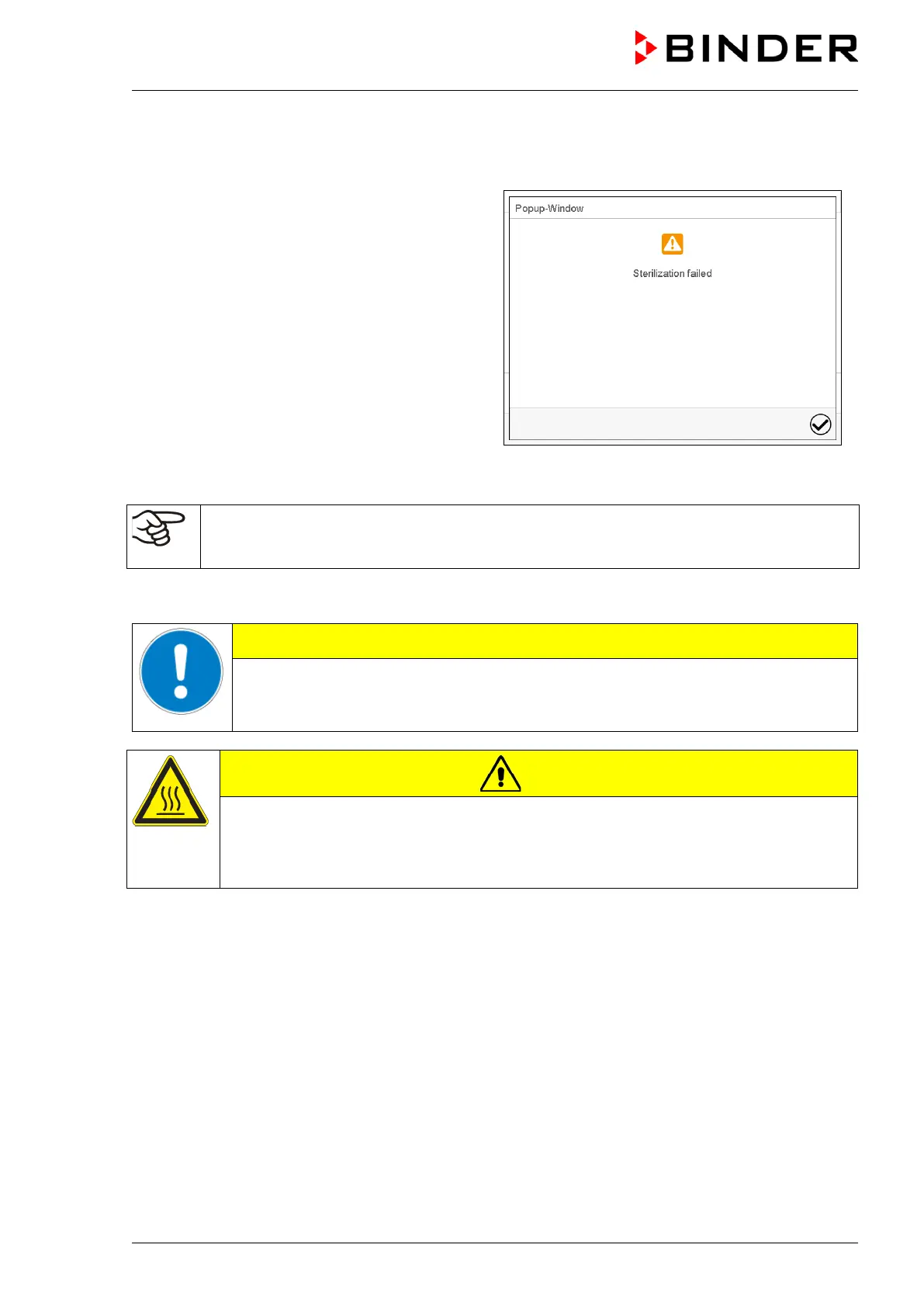 message “Sterilization failed” and when the temperature has cooled down to a value below <