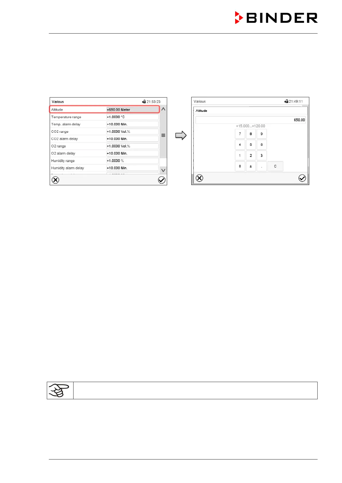“Altitude” entry menu. Enter the desired altitude