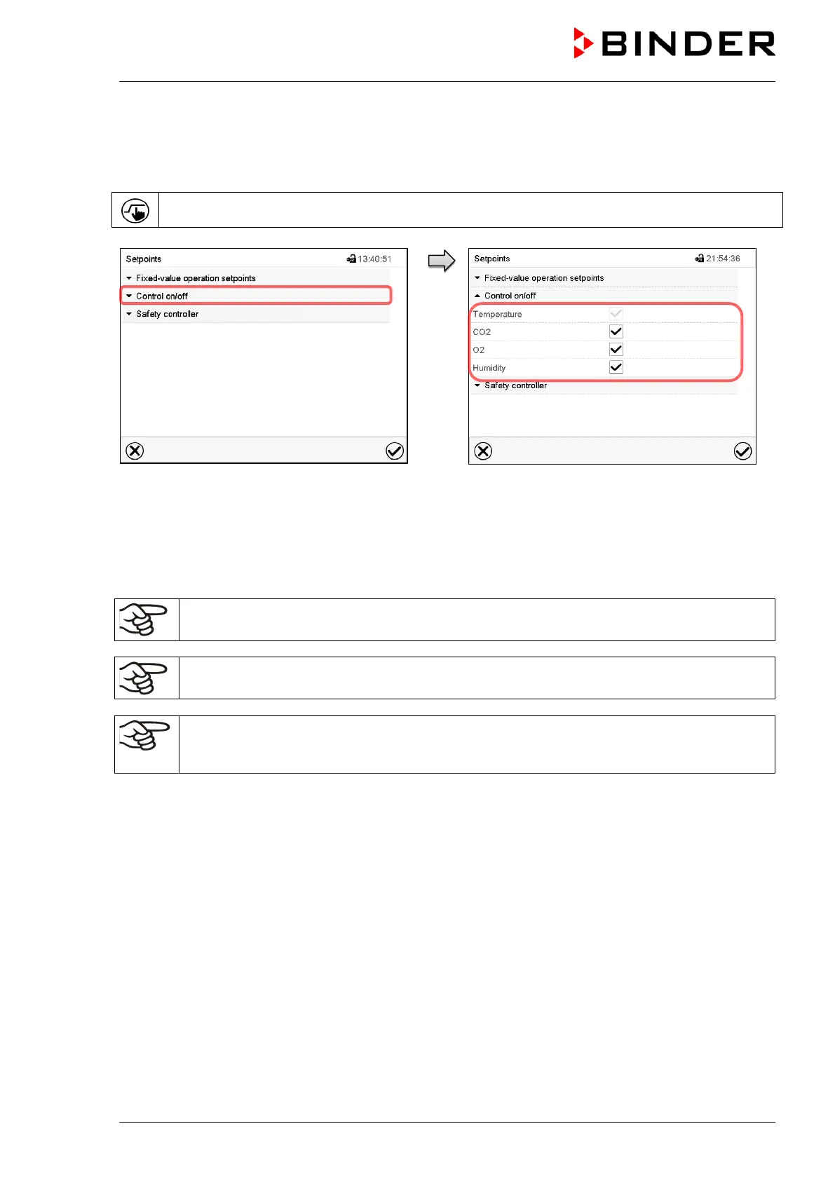 Press the Setpoint setting icon to access the “Setpoint” setting menu from Normal display.