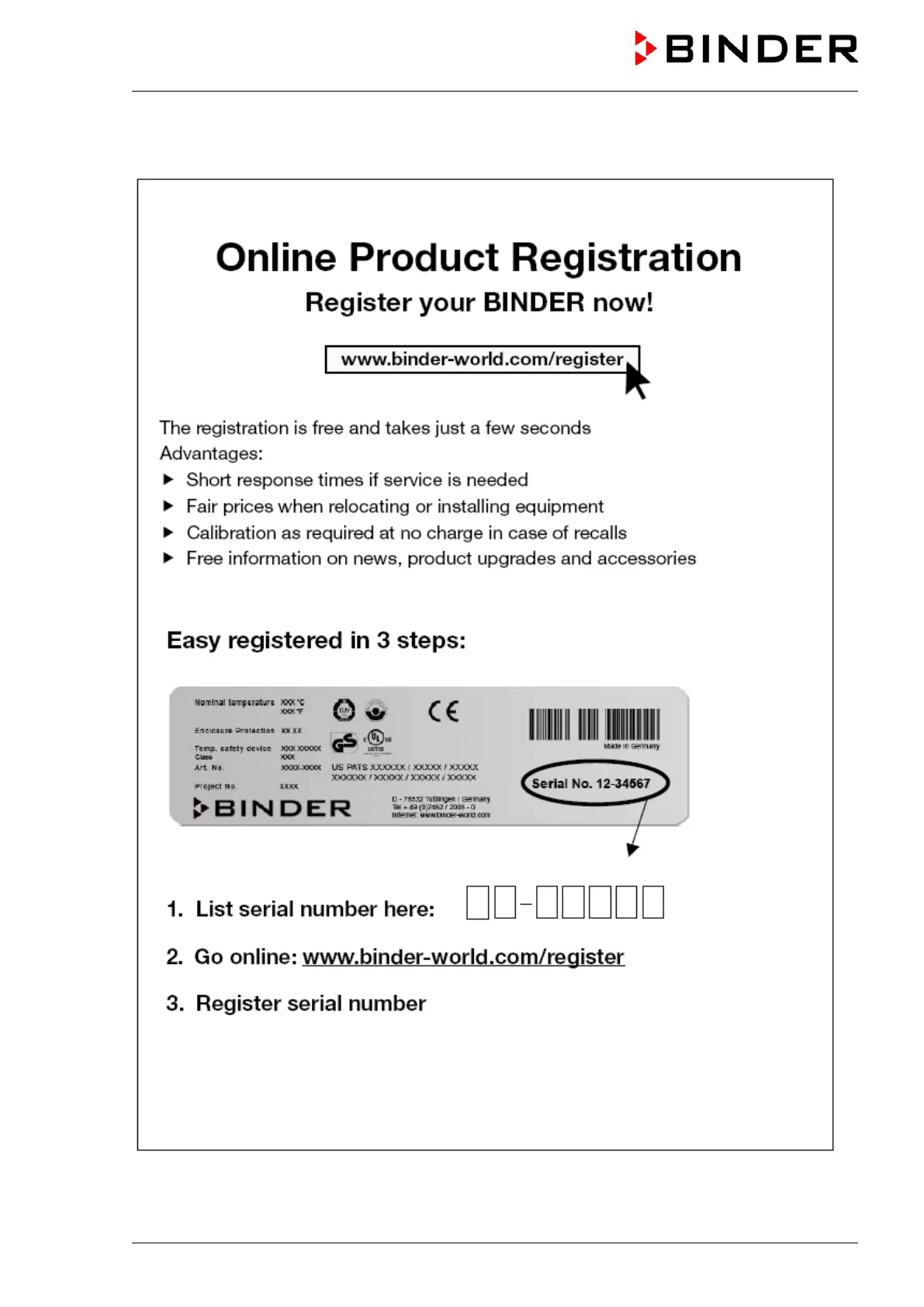 Binder CB 60-UL - Product Registration
