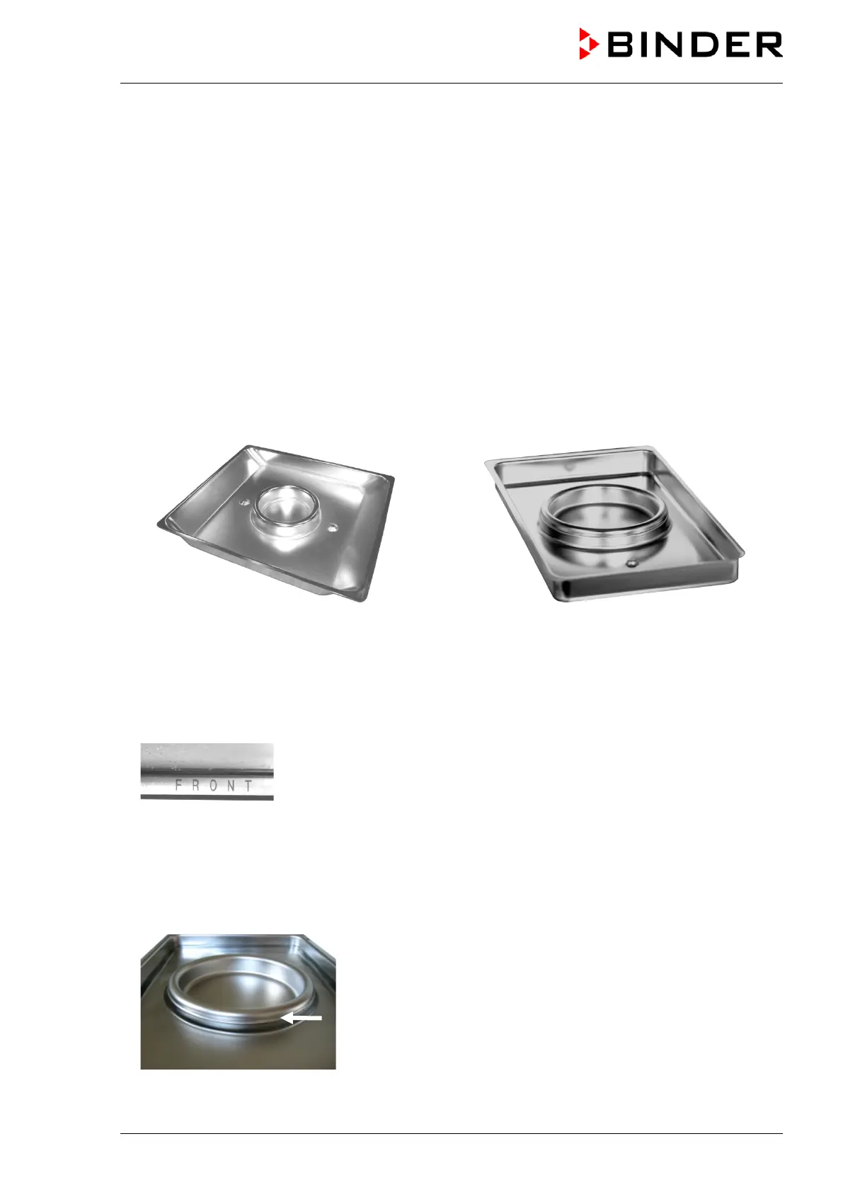 • The front side of the Permadry™ water pan is marked “FRONT”.