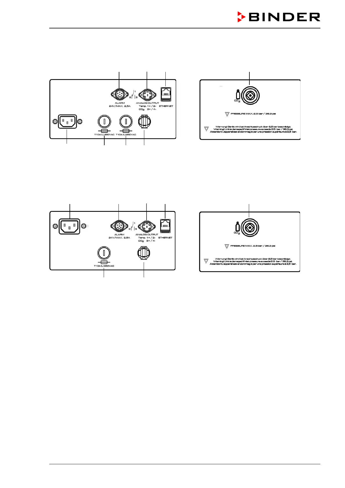 2.3 Connection panel on the rear of the chamber