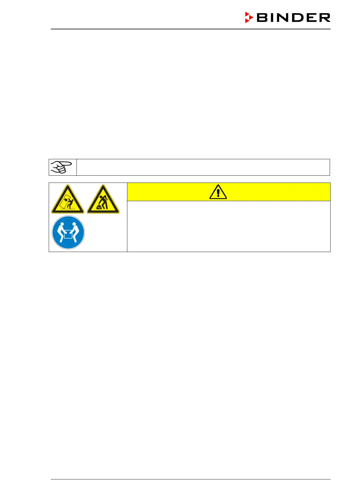 ∅ Do NOT lift or transport the chamber using the door handle or the door.
