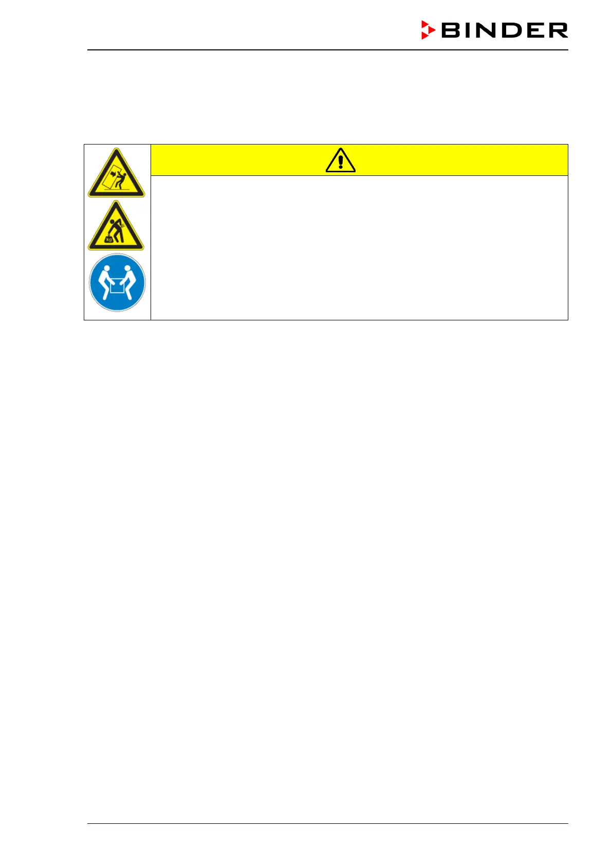 Risk of injury and damages by lifting heavy loads and by sliding or tilting of the