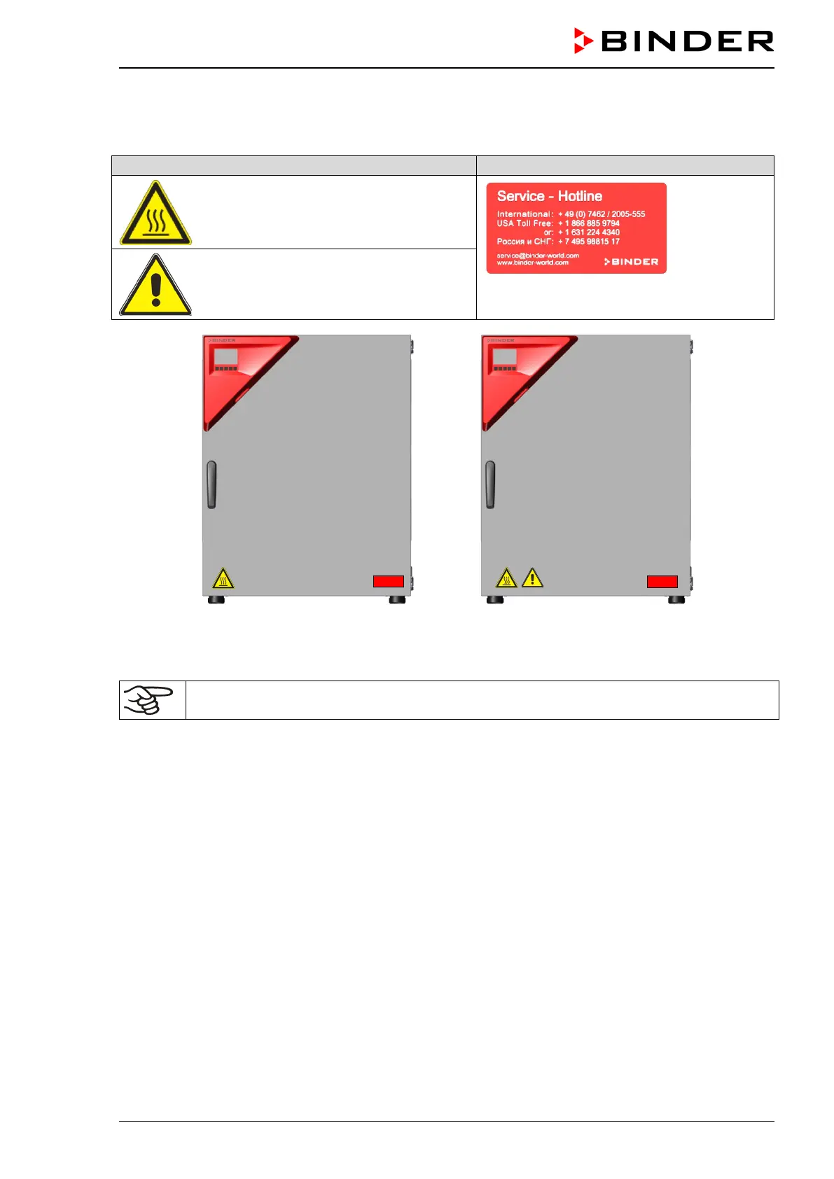 Replace safety labels that are no longer legible. Contact BINDER Service for these replacements.
