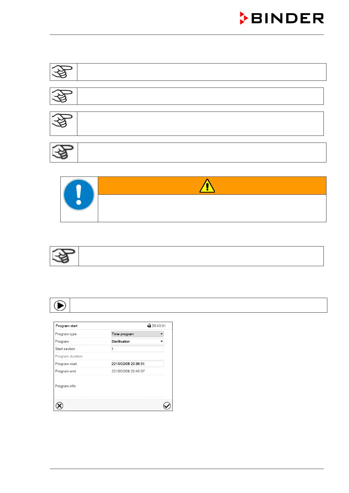 In Normal display press the Program start icon to access the “Program start” menu.