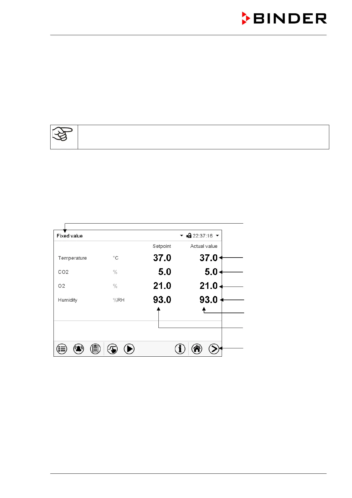 You can enter the desired set point values in fixed value operation mode directly on the display surface or